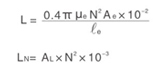 The inductance of a wound core at a given number of turns is calculated using the following formula